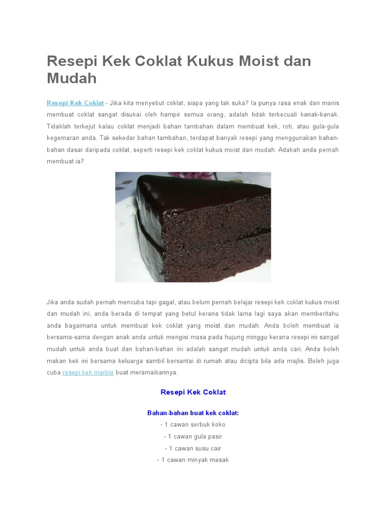 Resepi Kek Coklat Kukus Moist Dan Mudah Pdf